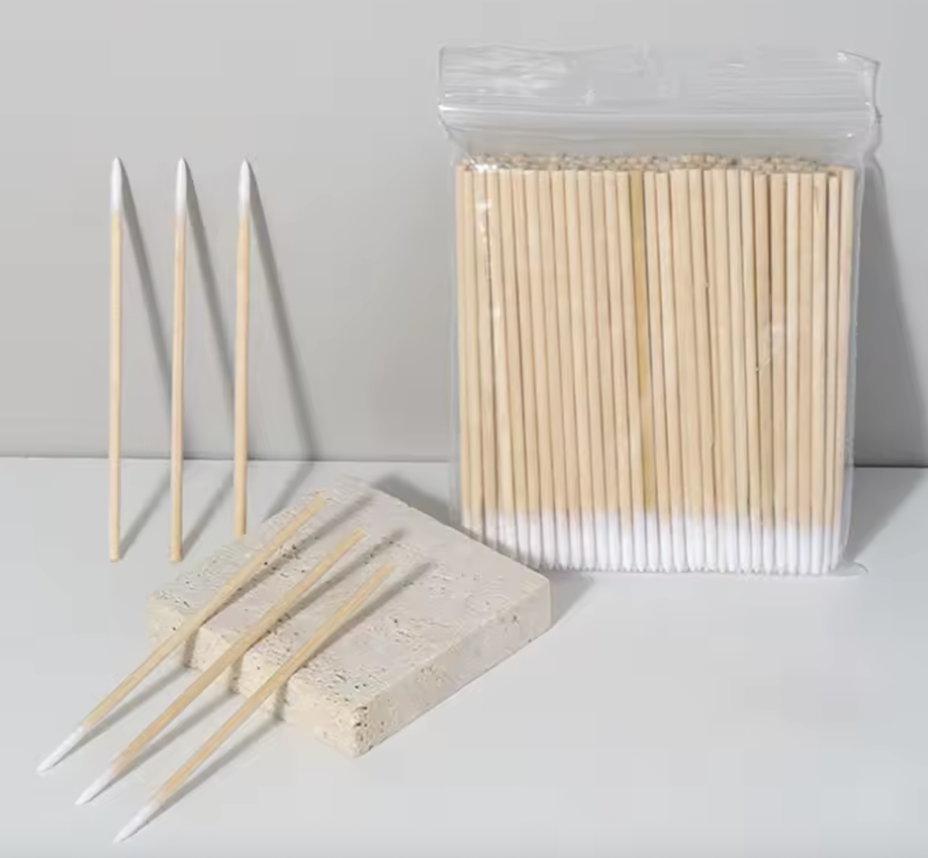 Palitos desechables con punta fina de algodón, ideales para limpiar y perfilar el contorno de la ceja durante la aplicación de henna o tinte. Permiten retirar exceso de producto con precisión, ayudando a lograr un acabado limpio y definido.